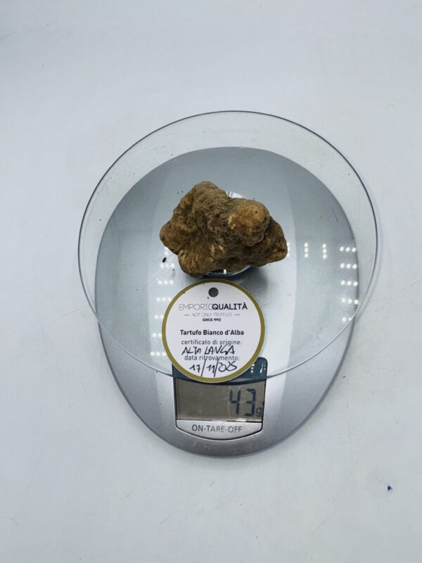 € 185,00 IVA INCLUSATartufo bianco d’ Alba Tuber Magnatum Pico Prov. Alta Langa cavato il 1711/25 gr.43N